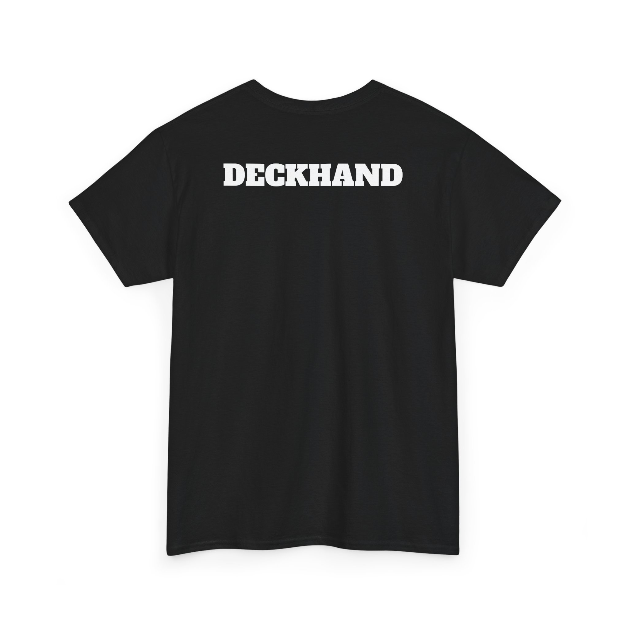 This classic tee brings salty, hands-on nautical energy to everyday wear. The front carries a small, weathered tiki-logo over the heart, while the back boldly reads “DECKHAND” in a worn, maritime stencil — a quiet nod to long days on deck, knotwork, and sun-bleached stories. The fit is relaxed and breathable so it layers easily under a flannel or stands alone on hot afternoons when you’re checking lines or rinsing gear. It’s the sort of shirt you reach for when you want to feel connected to the water and the crew — simple, sturdy, and built for movement.